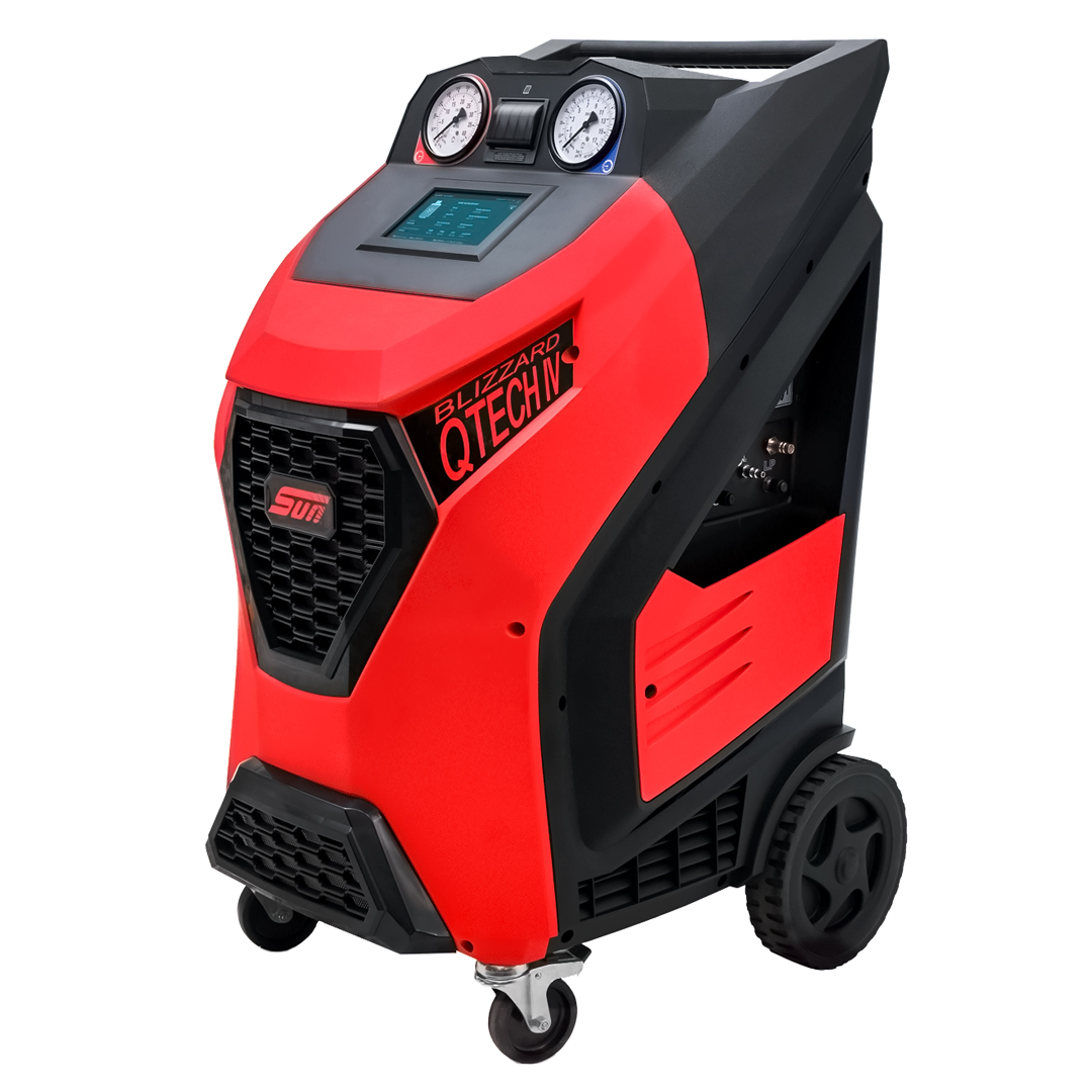 The SUN® KoolKare Blizzard QTech IV is a professional air conditioning service machine designed for the automatic recovery, recycling, and recharging of R134a or HFO1234yf refrigerants.