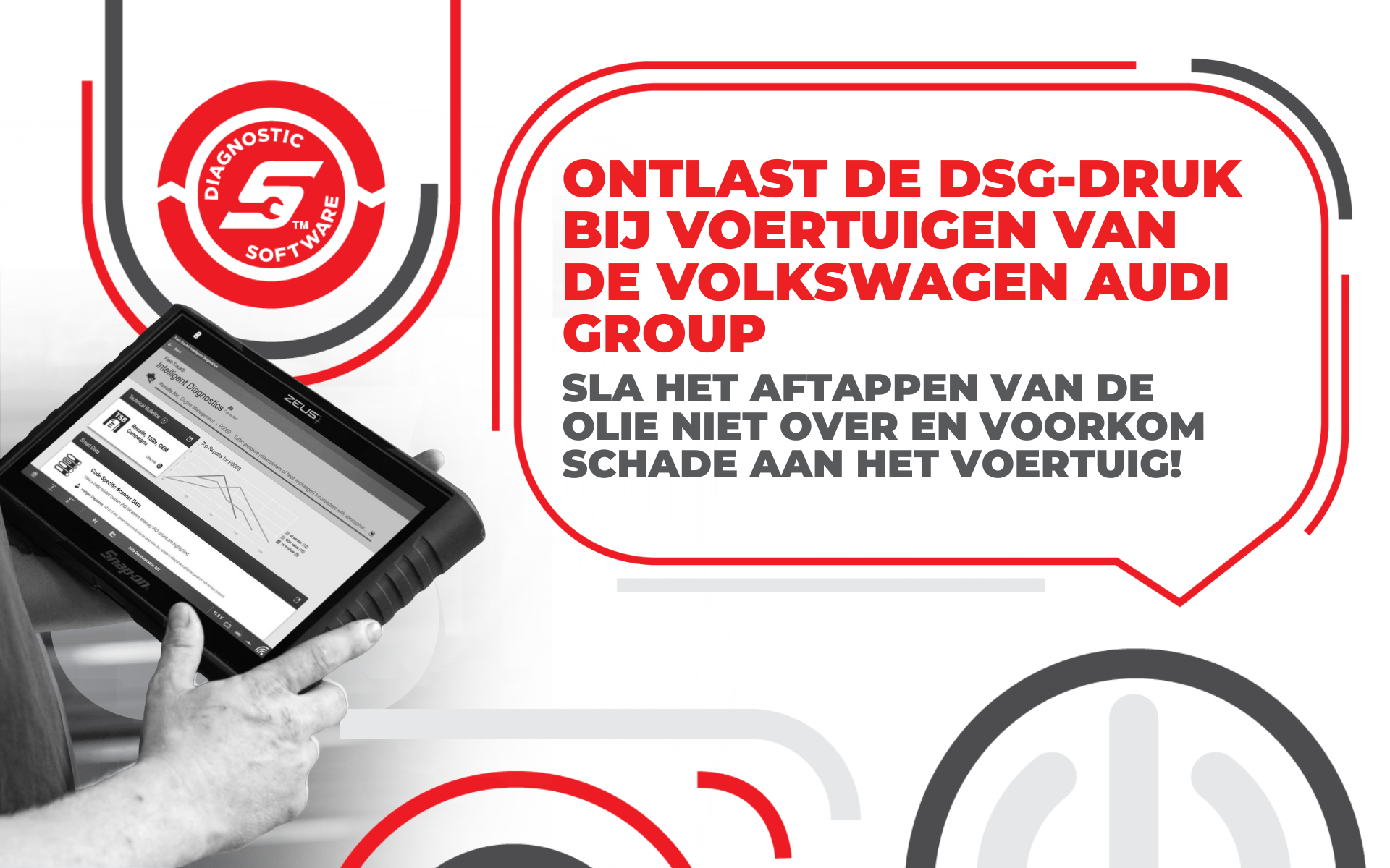 De nieuwste update van de Snap-on®-diagnosesoftware introduceert een speciale functie voor ondersteunde VAG-voertuigen, waarmee technici het DSG-systeem veilig drukvrij kunnen maken zonder dat daarvoor een OEM-tool nodig is.